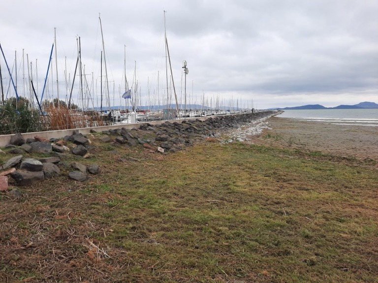 A látvány rendkívüli és baljós jövőképet vetít előre. Jelenleg a Balaton déli partjainál száraz lábbal jócskán be lehet sétálni a mederbe anélkül, hogy víz érne minket. A látvány apokaliptikus és szomorú. Vajon hogyan tovább?