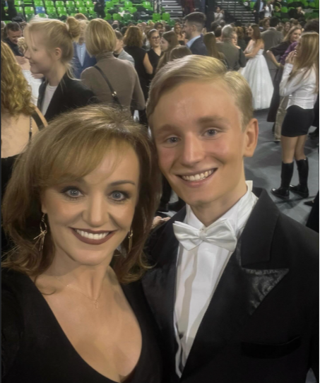 A 19 éves Csabi végső évét járja a középiskolában, és most került sor a szalagavatójára. Szandi feketében jelent meg fia mellett, aki öltönyben, fehér csokornyakkendővel mosolygott édesanyja mellett.