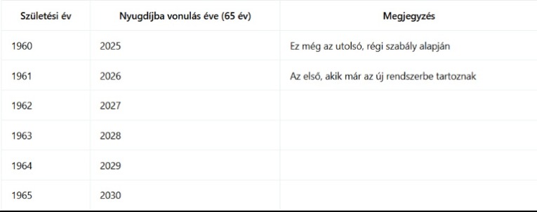 Megjegyzés: Az 1957-ben vagy később születettek legkorábban a betöltött 65. életév napján kérhetik a teljes öregségi nyugdíjat.