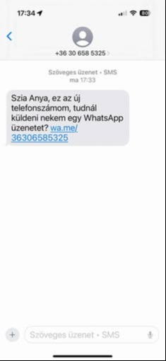 Szia, Anya, ez az új telefonszámom, tudnál küldeni nekem egy WhatsApp-üzenetet? – ezzel a szöveggel, és egy látszólag ártalmatlan linkkel kapott üzenetet Várkonyi Andrea. Bevallotta, ha éppen nem ül mellette a lánya, talán még be is dől a feltételezhető csalásnak.